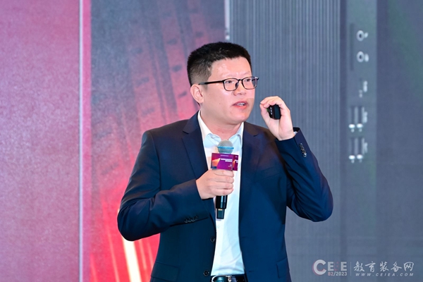 聯(lián)想開(kāi)天科技有限公司副總裁、解決方案總經(jīng)理曹先念作關(guān)于《以全棧創(chuàng)新推動(dòng)教育信創(chuàng)發(fā)展》的報(bào)告