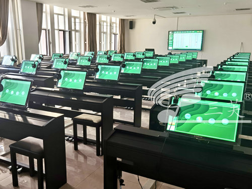 在智慧鋼琴教室建設上新疆政法學院選擇了“三芙”牌ZHCX-21型智慧鋼琴系統。“三芙”智慧鋼琴教室是以“主流品牌數碼鋼琴+專業高清護眼一體電腦+三芙專業管理平臺和專用教學課件”組合而成,呈現為“專業的樂器+專業的教學應用管理”。三芙ZHCX-21慧數碼鋼琴教室通過音頻交互教學、鋼琴樂譜教學,鋼琴鍵盤互動,鋼琴節奏培養、鋼琴娛樂練習、鋼琴彈唱教學、鋼琴指法教學、課件庫與教材、課堂遠程控制、輔助鋼琴教學等十余個教學模塊完成鋼琴集體課學習。通過對該教室的使用,學生可以快速掌握鋼琴的基本彈奏技能,并可以學習一定的“教學技巧”。