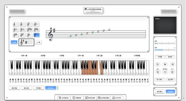 音基訓練與測評系統是一款功能強大的教學工具,為音樂教育提供了全面的支持和便利。支持視唱、聽音練耳、音基理論等多種教學模式,滿足不同音樂教學需求。學生可以通過點擊五線譜音符進行練習,實現互動式學習體驗。提供節拍器輔助練習與測評,幫助學生更好地掌握節奏感。支持根據教學進度調節播放/測評速度,讓教學更加靈活。可自定義題目,包括添加、刪除視唱題目,支持通用的MIDI文件和.3F數字樂譜格式。附贈課件轉換工具,可將數字樂譜格式轉換為系統適用的視唱題目格式,提高教師轉換效率。預設七種視唱題型,每種題型包含不低于15種視唱題目,滿足不同難度需求。教師可指定廠家預設題型與題目,選擇適用于教材的視唱題目,實現個性化教學。我們的音基訓練與測評系統是音樂教育的得力助手,為教師和學生提供了全方位的支持和便利,助力音樂教學更加高效、有趣。