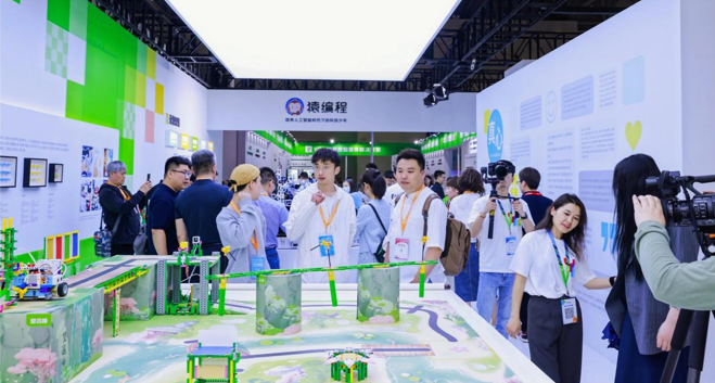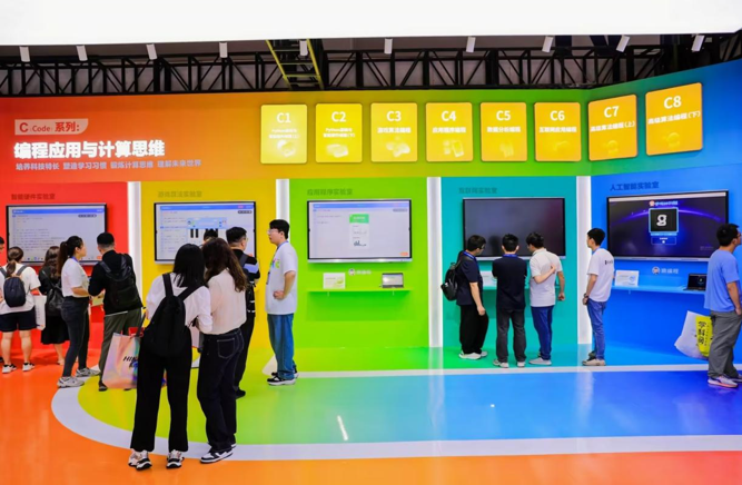 為了讓學生們能夠更直觀、更生動地理解編程,在本屆教裝展,猿編程為C系列打造出五個特色主題實驗室:智能硬件實驗室、游戲算法實驗室、應用程序實驗室、互聯網實驗室以及人工智能實驗室。這些實驗室為孩子們開啟了一扇親身體驗科技與生活交融的大門,讓他們有機會親手操作智能遙控車、參與小小音樂家游戲,體驗人機對弈井字棋等等。這些活動不僅趣味橫生,還能讓人深刻感受到編程技術為生活帶來的無限可能。