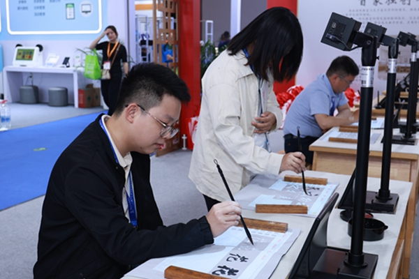 本屆展會(huì)文興主要帶來(lái)了智慧書(shū)法教室,智慧美術(shù)教室,智慧沙畫(huà)教室,數(shù)字棋藝教室。而這次展會(huì)的產(chǎn)品亮點(diǎn)和特色,是書(shū)畫(huà)投射臨摹臺(tái)和書(shū)畫(huà)創(chuàng)新教室。書(shū)畫(huà)投射臨摹臺(tái)是利用5G無(wú)線傳輸技術(shù)和投影技術(shù)集成的一款新產(chǎn)品,將教師中控機(jī),書(shū)法視頻、圖片,課件內(nèi)容等一鍵同屏于學(xué)生桌面。能高清觀看字帖,學(xué)習(xí)臨摹書(shū)法,投射尺寸從21.5寸至108寸之間,投射面積擴(kuò),完全滿(mǎn)足大畫(huà)面臨摹和大畫(huà)面播放要求。書(shū)畫(huà)創(chuàng)新教室,能實(shí)現(xiàn)書(shū)法美術(shù)一體化建設(shè),能滿(mǎn)足書(shū)法教學(xué)的前提,又能滿(mǎn)足美術(shù)繪畫(huà)要求。本款產(chǎn)品的亮點(diǎn),就是可實(shí)現(xiàn)上下升降功能,可實(shí)現(xiàn)軟筆,硬筆,粉筆等教學(xué)需要。