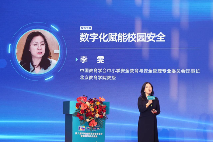 中國教育學(xué)會中小學(xué)安全教育與管理專業(yè)委員會理事長李雯向現(xiàn)場嘉賓作了“數(shù)字化賦能校園安全”主題報告,她指出:利用人工智能、大數(shù)據(jù)、物聯(lián)網(wǎng)等數(shù)字化技術(shù),為學(xué)生構(gòu)建更人性、智能、輕松、便捷的在校生活環(huán)境,將是未來教育數(shù)字化發(fā)展的重要方向。