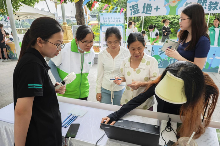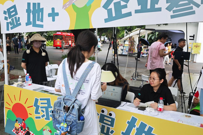 本次活動旨在深度挖掘海珠濕地作為城市綠肺的生態價值,展示“濕地+”模式的創新成果,引領全社會邁向綠色生活新風尚;顒蝇F場還以“濕地公園+”為主線,串聯起生態藝術、自然書屋、安全教育等多個主題展位,通過一系列展覽展示、互動游戲,吸引公眾打卡參與,增進公眾對海珠濕地的了解,提高參與生態保護的熱情。