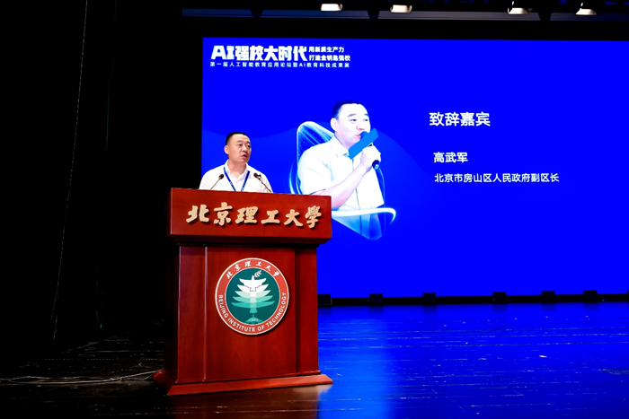 北京市房山區人民政府副區長高武軍為大會致辭。高武軍代表房山區委、區政府對各界朋友的到來表示熱烈歡迎,對論壇的召開表示祝賀!他表示,在社會各領域,教育具有基礎性、戰略性、根本性地位,區委、區政府高度重視教育事業發展,特別是對人工智能教育寄予厚望。房山區以平等開放的原則、共贏合作的理念,建設智能教育發展共同體,探尋具有普遍適用性的有益建議和做法。