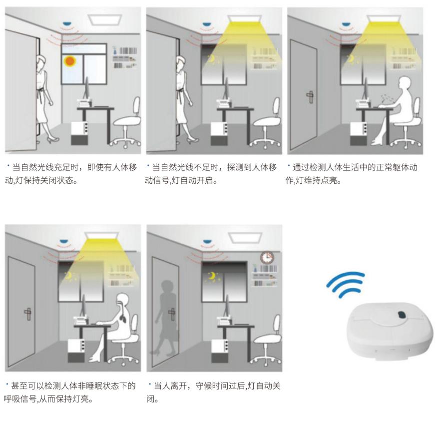 該系統具有智能感應功能,將人體移動感應與環境光感相結合,做到人來燈亮、人走燈滅,并隨著環境光的明暗變化自動調節燈具自身亮度,保持整體環境亮度的一致性,并進一步達到節能的效果。