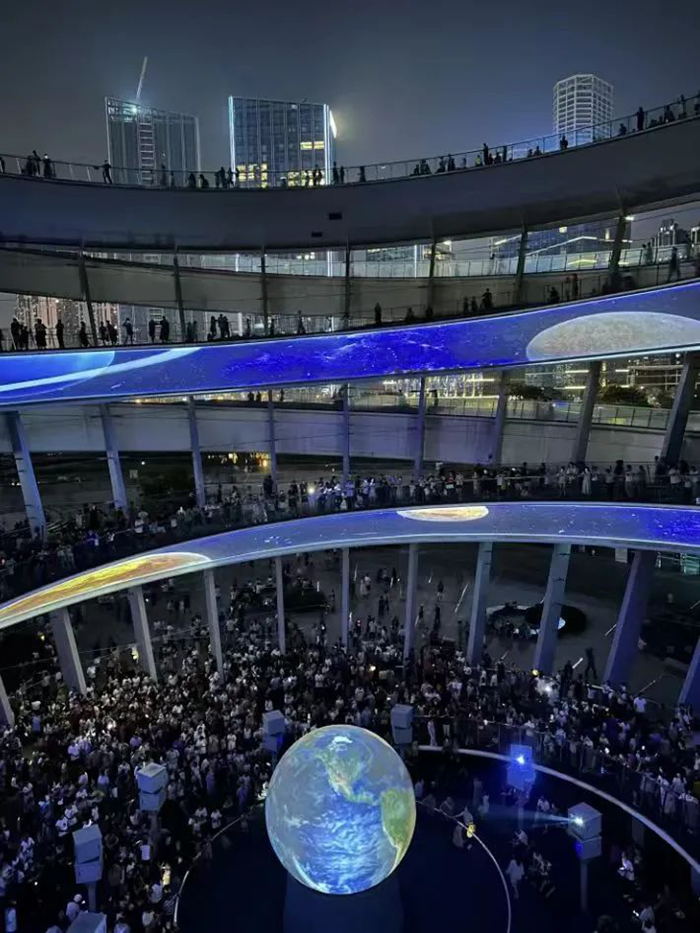 “城市島AR星空”不僅僅是一個簡單的投影展示,它是一個集科技與藝術于一體的綜合性體驗空間。在這里,觀眾可以體驗到前所未有的沉浸式星空之旅。通過先進的AR技術,球幕上呈現出的星空不再是靜態的,而是充滿了動態的星云、流星和星座故事。觀眾仿佛置身于浩瀚的宇宙之中,感受著科技帶來的別樣魅力。