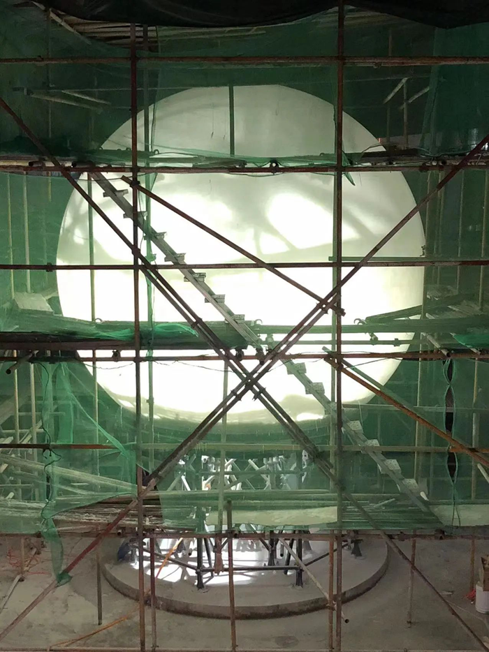 羿飛教育首次挑戰了如此巨大尺寸的內投球幕。以往在球幕制作上的經驗,無法在這個產品上復制。面對這一挑戰,羿飛教育的工程師們經過無數次的討論與試驗,最終制定出一套全新的加工方案,確保了球幕的精確制作。
