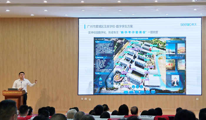 同時,希沃也展示了數字巡課與數字孿生校園在廣州市黃埔區玉泉學校的深度應用。通過三維建模技術建立校園孿生空間,該校管理者不用到現場就可以在平臺上實時查看校園環境,迅速掌握校園區域安全狀況!霸诳梢暬3D校園中,管理者可以通過放大縮小定位至某棟教學樓,聯合安全防控數據,實時查看某個教室的設備狀態,并且遠程管控。”