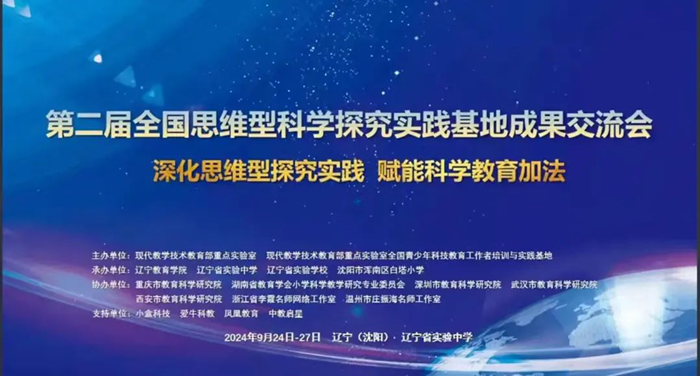 2024年9月24-27日,第二屆全國思維型科學探究實踐基地成果交流會在遼寧沈陽召開,本次會議主題為“深化思維型探究實踐賦能科學教育加法”。本次活動由現代教學技術教育部重點實驗室及現代教學技術教育部重點實驗室全國青少年科技教育工作者培訓與實踐基地聯合主辦,遼寧教育學院及相關中小學承辦,來自各實踐基地和部分科學教育實驗區特邀代表700余人參加了本次會議。