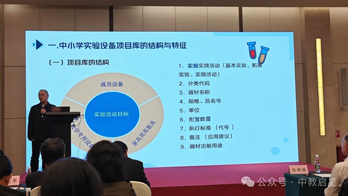 其中,南京市教育技術裝備中心鄧中材主任分享的題目為《“項目庫”牽引實驗設備更新優質高效》。鄧主任以南京市裝備的實際案例,向大家介紹了中小學實驗設備項目庫的結構與特征、如何集約式推進項目的落地、項目后評價及項目庫優化。