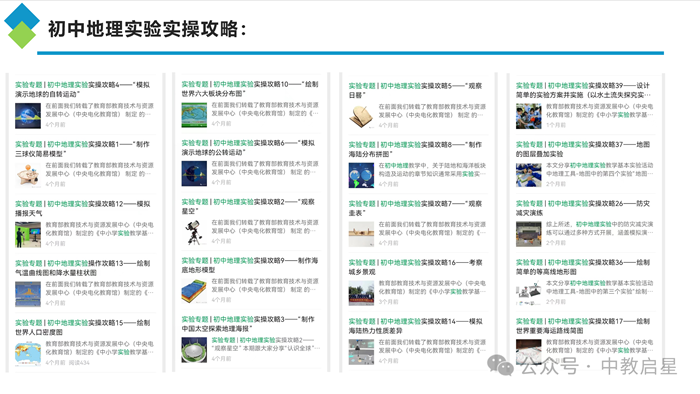 中教啟星結合在地理教育裝備領域多年的研發和教研經驗,推出系列【實驗專題】文章,按照教育部發布的地理實驗教學目錄,逐一整理每一個實驗實施時可以用到的工具裝備,實驗方案、學校案例,并結合自己工作經驗進行比較分析,便于老師們實操時參考和借鑒。初中完成21個實驗,高中完成24個,全部是可實施、操作性較強的代表性實驗。老師們點擊【實驗專題】即可跳轉到該專題頁面,查看所有地理實驗實操攻略文章。