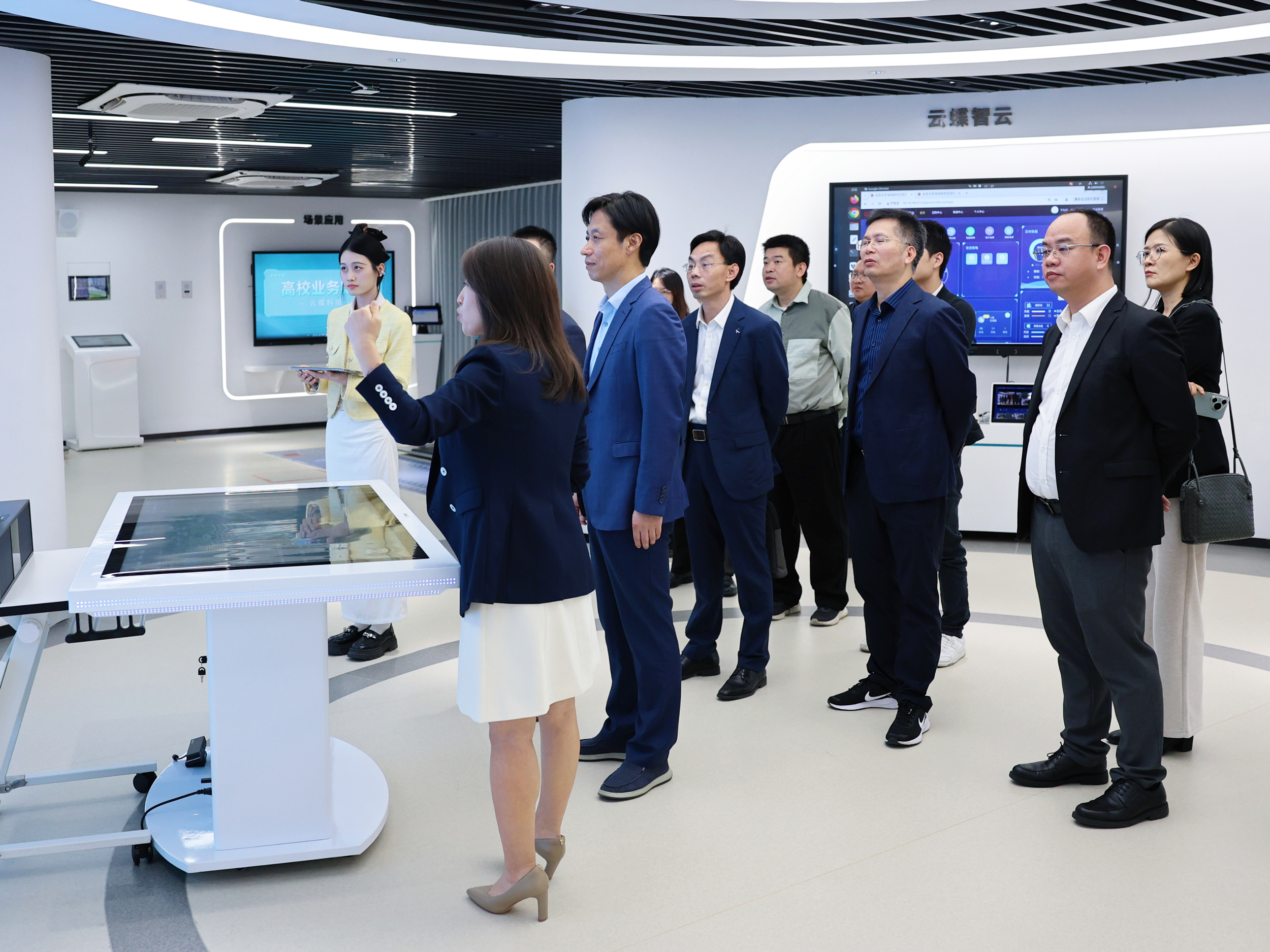 在云蝶科技展廳,楊中民校長一行聽取云蝶科技的發展歷程、業務領域顯著成果的匯報,對云蝶科技在人工智能大模型和智慧教育領域所取得的創新成績給予了高度評價。