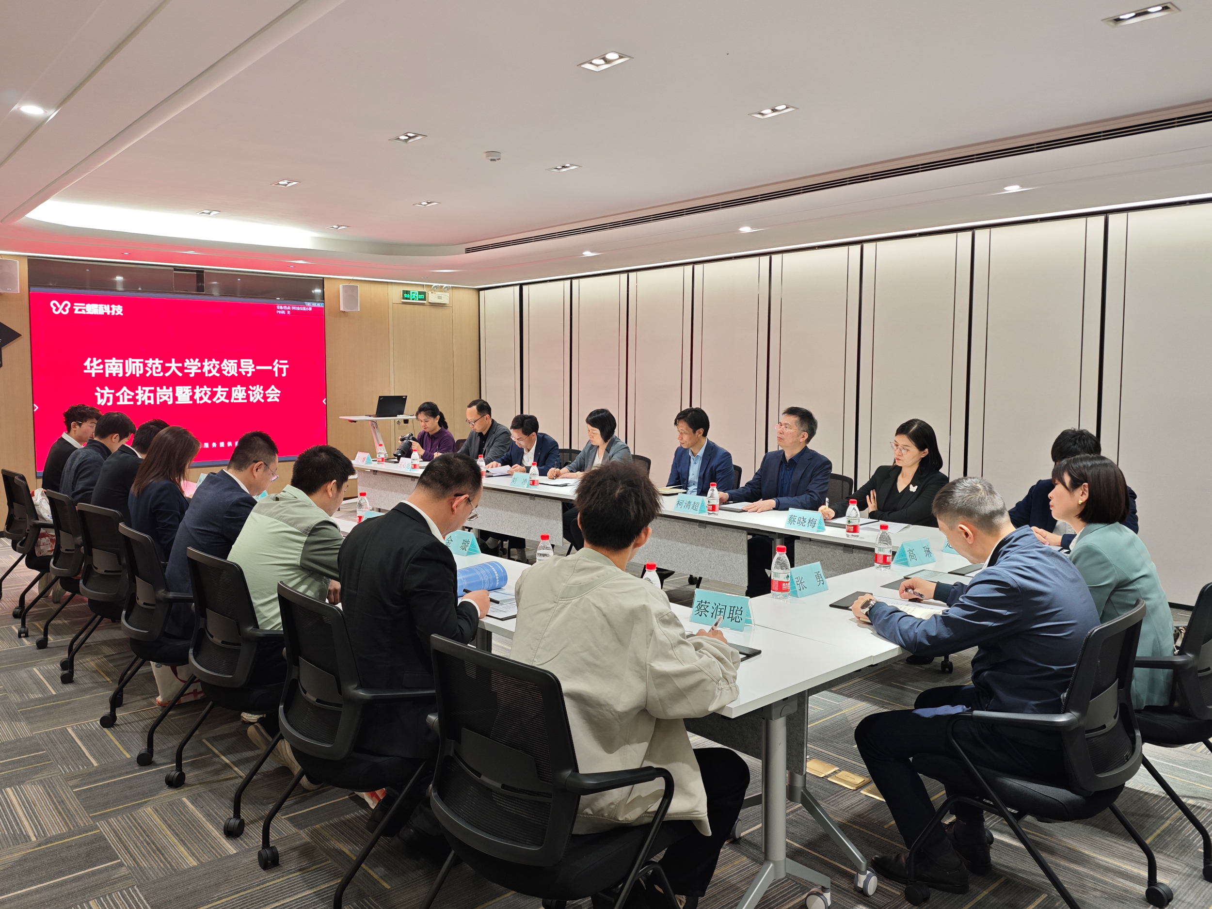 在隨后舉行的座談會上,雙方就如何深化校企合作、拓展就業崗位展開交流。楊校長表示,華南師范大學致力于培養具有創新精神和實踐能力的人才,云蝶科技等校友企業的成功經驗具有示范作用。他強調,今后學校將通過校外辦學、訪企拓崗等方式加強與校友企業的聯系,與校友企業共同成長。