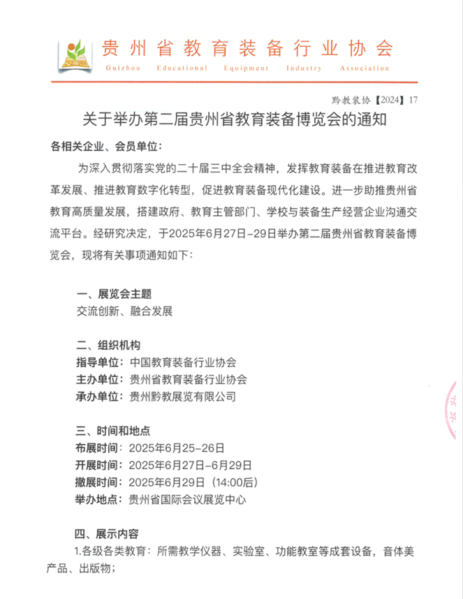 關(guān)于舉辦第二屆貴州省教育裝備博覽會的通知