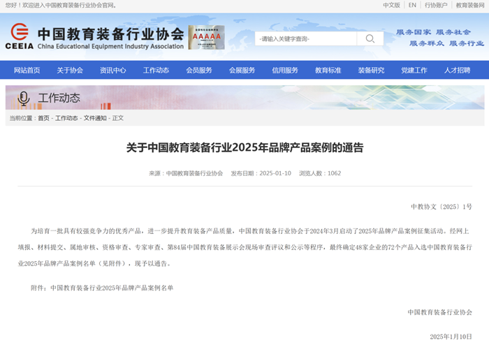 為培育一批具有較強競爭力的優(yōu)秀產(chǎn)品,進一步提升教育裝備產(chǎn)品質(zhì)量,為我國教育裝備行業(yè)高質(zhì)量發(fā)展積蓄新動能,中國教育裝備行業(yè)協(xié)會舉辦品牌產(chǎn)品案例征集活動。