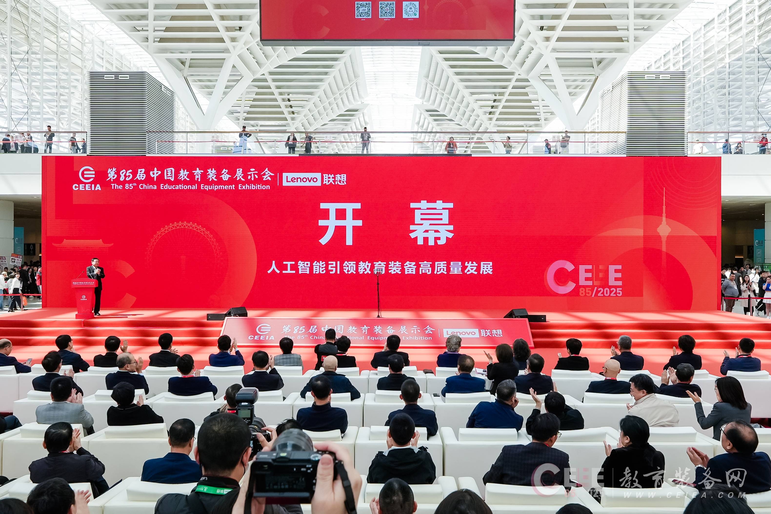 4月25日,第85屆中國教育裝備展示會(以下簡稱“教裝展”)在國家會展中心(天津)開幕。本屆教裝展由中國教育裝備行業協會主辦,天津市教育委員會、天津市商務局、天津市津南區人民政府、天津市教育科學研究院共同承辦。中央社會工作部全國性行業協會商會第十四聯合黨委書記、中國教育裝備行業協會會長靳諾,天津市委常委、河西區委書記王旭,天津市副市長張玲,教育部原黨組成員、原中紀委駐教育部紀檢組組長田淑蘭,天津市政協副主席、市教科院院長李劍萍,世界教具聯合會總干事兼秘書長羅瑞格(Rodrigo Sáez Muñoz)等領導嘉賓出席開幕式。