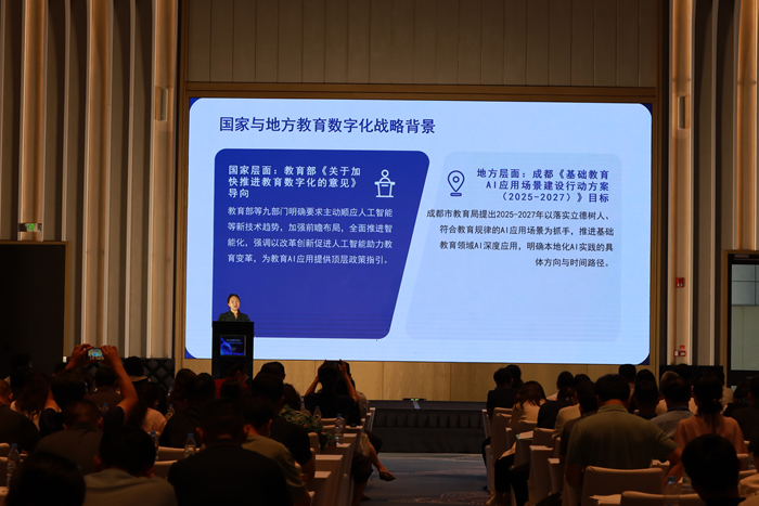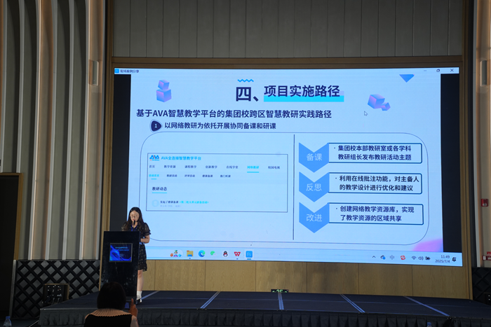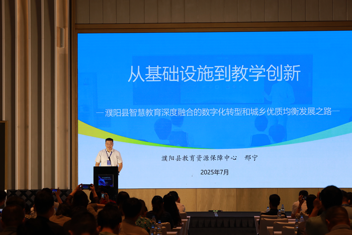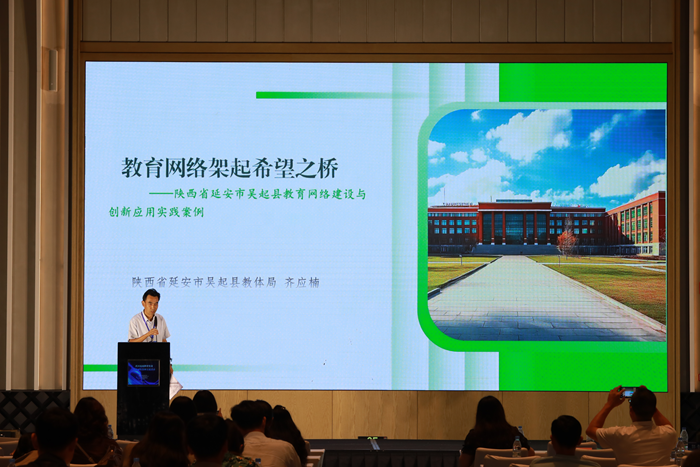 在案例分享環(huán)節(jié),山東省淄博市教育局總督學(xué)、三級調(diào)研員趙志遠在《全環(huán)境數(shù)字生態(tài)視域下教育數(shù)字化轉(zhuǎn)型的實踐探索》報告中,以系統(tǒng)思維生動詮釋了“全域性”(空間覆蓋的全域性、教育鏈條的全域性和生態(tài)要素的全域性)在教育數(shù)字化轉(zhuǎn)型中的價值;四川省成都市教育技術(shù)裝備管理中心副主任倪宏所作的《成都教育AI應(yīng)用孵化園平臺建設(shè)實踐》報告,以國家教育數(shù)字化戰(zhàn)略為引領(lǐng),系統(tǒng)闡述了成都教育AI孵化園建設(shè)實踐,對區(qū)域教育AI生態(tài)構(gòu)建、推動基礎(chǔ)教育數(shù)字化轉(zhuǎn)型具有重要參考價值;河南省濮陽縣教育資源保障中心副主任邢寧在《從基礎(chǔ)設(shè)施到教學(xué)創(chuàng)新:濮陽縣智慧教育深度融合的數(shù)字化轉(zhuǎn)型和城鄉(xiāng)優(yōu)質(zhì)均衡發(fā)展之路》主題分享中,以濮陽縣智慧教育實踐為樣本,詳細闡述了從基礎(chǔ)設(shè)施升級到教學(xué)創(chuàng)新的全鏈條探索;山東省濟寧市教育技術(shù)裝備服務(wù)中心主任韓瑾以《探索中小學(xué)實驗室安全“4S”管理體系 推動學(xué)校危險化學(xué)品安全管理創(chuàng)新》為題,介紹了如何從采購、管理、使用到處置全鏈條構(gòu)建中小學(xué)實驗室安全管理體系;四川省巴中市南江縣南江中學(xué)黃鶴老師分享的《基于生成式人工智能的STEAM教育實踐——以班歌創(chuàng)編與智能機器人展演為例》生動、系統(tǒng)地呈現(xiàn)了“AI助創(chuàng)班歌+機器人編程”案例的活動方案、實施流程與成果,該案例將語文、音樂、數(shù)學(xué)、信息科技等多學(xué)科融合,借助AI創(chuàng)作工具提高學(xué)生的創(chuàng)造力和科學(xué)思維能力;內(nèi)蒙古自治區(qū)烏海市烏達區(qū)實驗中學(xué)胡娜老師所作的《智慧教室賦能地域文化教學(xué)創(chuàng)新——基于數(shù)字校園環(huán)境的“Beautiful Wuhai”項目化教學(xué)實踐》報告分享了一個頗具創(chuàng)新性的實踐項目,該項目緊密結(jié)合地域文化特色,展現(xiàn)技術(shù)賦能文化教學(xué)的魅力;青海省西寧市第二中學(xué)李元英老師分享的《巧循數(shù)字化為“徑”,助推教育集團協(xié)同教研邁入智慧之“境”》為跨區(qū)教研活動找到了一條創(chuàng)新之路,基于AVA智慧教學(xué)平臺推動教研活動精準實施;陜西省延安市吳起縣教育體育局齊應(yīng)楠老師分享的《教育網(wǎng)絡(luò)架起希望之橋——吳起縣教育網(wǎng)絡(luò)建設(shè)應(yīng)用與實踐案例》,讓人們看到了吳起縣以教育網(wǎng)絡(luò)為筆,在黃土高原腹地繪就的教育信息化美麗畫卷,為實現(xiàn)教育公平和質(zhì)量提升架起了希望之橋。
