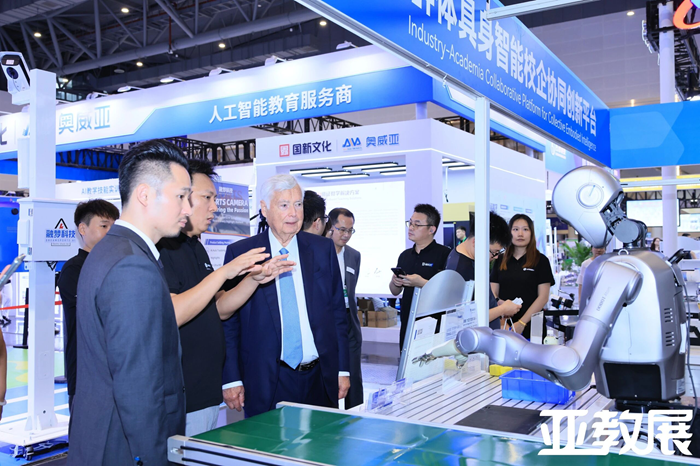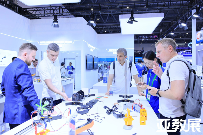 作為亞洲地區(qū)備受矚目的教育裝備博覽會(huì),本屆亞教展首次被引入中國內(nèi)地,將連續(xù)10年在中國內(nèi)地舉辦。本屆亞教展順應(yīng)數(shù)字技術(shù)發(fā)展趨勢,掀起教育“智變”浪潮,展區(qū)集結(jié)德國費(fèi)斯托(FESTO)公司的MPS協(xié)作機(jī)器人單元和智能化Electeo電子教育設(shè)備、丹麥優(yōu)傲機(jī)器人(Universal Robots)公司的協(xié)作機(jī)器人實(shí)訓(xùn)站等30余家國際企業(yè)創(chuàng)新產(chǎn)品;阿里巴巴的釘釘云課堂,科大訊飛的AI黑板、人工智能通識教育平臺、虛擬人智能學(xué)習(xí)助手等中國領(lǐng)軍企業(yè)的智能化教學(xué)產(chǎn)品,真正實(shí)現(xiàn)“不出國門,看遍全球教育科技”。展區(qū)還吸引了宇樹科技、強(qiáng)腦科技、新華三、天煌科技、亞龍集團(tuán)等近百家本土龍頭企業(yè),集中展示智能機(jī)器人、腦機(jī)接口教學(xué)系統(tǒng)與腦科學(xué)基礎(chǔ)實(shí)驗(yàn)系統(tǒng)、AI智慧課堂、國產(chǎn)化芯片、智慧教學(xué)終端、智慧體育裝備等創(chuàng)新成果,全面彰顯數(shù)字經(jīng)濟(jì)蓬勃發(fā)展背景下,我國教育數(shù)字化發(fā)展的創(chuàng)新成果。