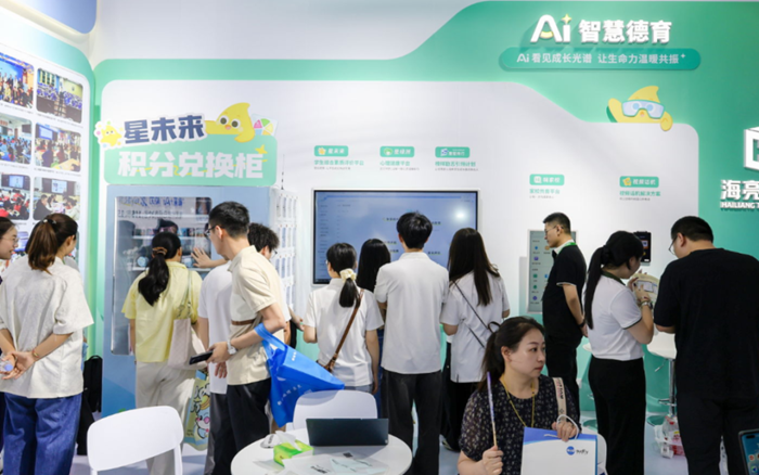 此外,觀展嘉賓還能在這里體驗校園智能管理助手“星魔方”智慧班牌、創新應用AI數字人的“星樂讀”平臺、“積分”“師徒”雙驅動的學生內驅力提升系統“星動力”、以線上線下相融合的教學教研模式助力優生培養的“海亮云校”等。