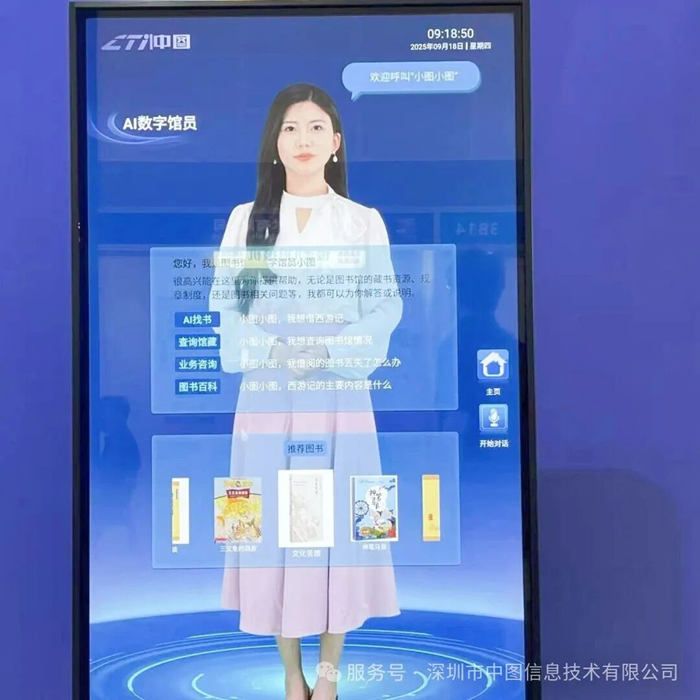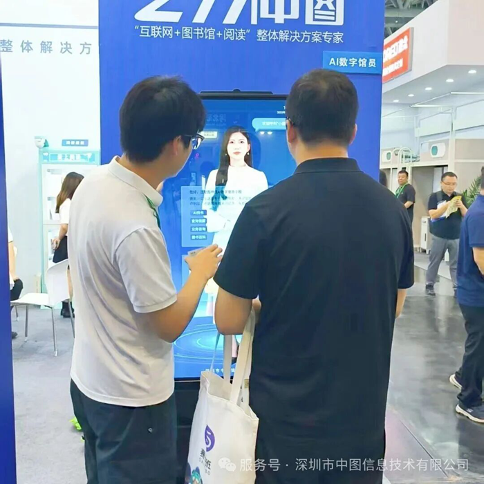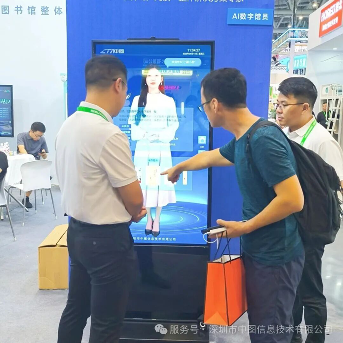 AI館員(全面屏數字人)作為中圖此次參展的“創新亮點”,以擬人化交互與智能推薦等功能,成為展位互動焦點。其基于先進自然語言處理與大語言模型技術融合的“能對話、懂需求、有溫度”服務,讓觀眾真切感受到科技的人文關懷。