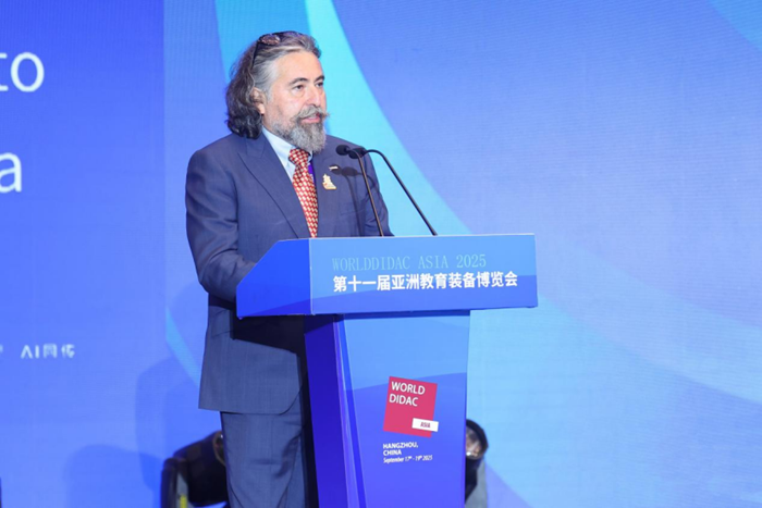 世界教具聯(lián)合會總干事羅瑞格·塞斯·穆尼奧斯強調(diào),人工智能機遇與挑戰(zhàn)并存,全球需共同把握負責(zé)任的發(fā)展方向。他建議以亞教展為紐帶,加強國際合作,將教育科技理念轉(zhuǎn)化為落地解決方案。