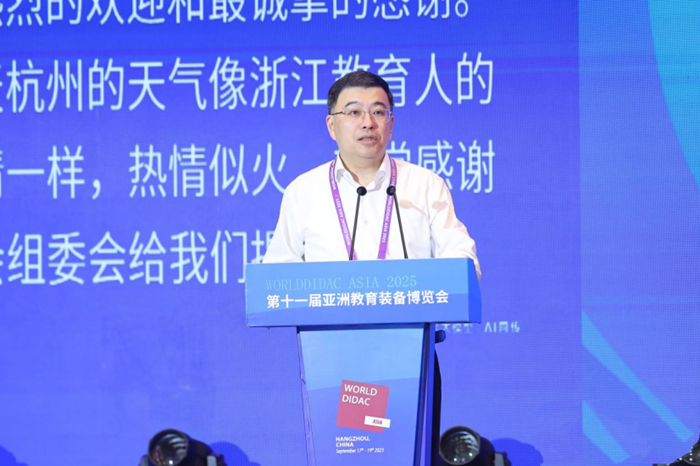 浙江省教育廳副廳長舒培冬在主旨報告中指出,浙江大力推進人工智能助力教育變革,構(gòu)建起“改革探索—區(qū)域普及—場景應(yīng)用”的多層次試點矩陣。他強調(diào),教師是智能時代教育變革的引領(lǐng)者,需通過大規(guī)模培訓(xùn)讓教師懂AI、用AI、護AI。