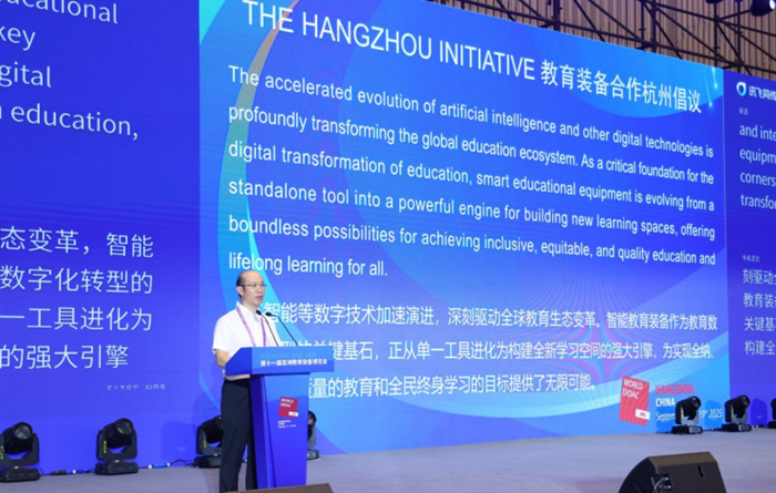 大會還發(fā)布2項成果。中國教育裝備行業(yè)協(xié)會教育裝備研究院常務(wù)副院長施建國發(fā)布12個人工智能賦能教育裝備最新成果。浙江省教育技術(shù)中心主任王會軍發(fā)布“教育裝備合作杭州倡議”,倡導(dǎo)共建教育裝備標(biāo)準,共研教育裝備創(chuàng)新,共享優(yōu)質(zhì)裝備資源,共護裝備安全倫理。