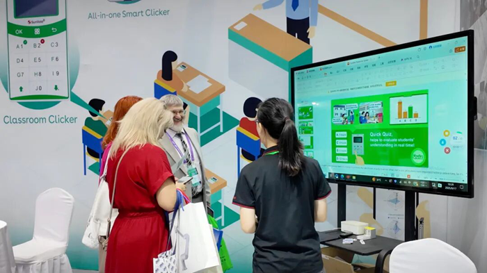 展會上,中天易教團隊帶來了全新的課堂教學效果即時反饋系統,向全球教育工作者呈現創新且專業的教育解決方案。
