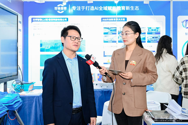 展會(huì)現(xiàn)場(chǎng),雙師智教(上海)教育科技有限公司總經(jīng)理孫華亭接受本站采訪(fǎng)。