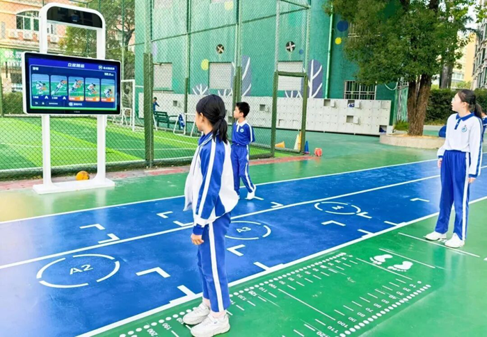 AI體育角一體屏設(shè)計(jì),一臺(tái)設(shè)備融合多項(xiàng)體感運(yùn)動(dòng)項(xiàng)目,在有限空間內(nèi)創(chuàng)造出豐富的趣味運(yùn)動(dòng)場(chǎng)景。人臉識(shí)別與肢體智能交互功能,滿足學(xué)生自助式玩耍、游戲化參與,多人同玩模式不僅活躍了課堂氛圍、減輕了教師的課堂組織負(fù)擔(dān),更極大激發(fā)了學(xué)生的運(yùn)動(dòng)興趣,使學(xué)生在玩耍中鍛煉身體,增強(qiáng)體魄。
