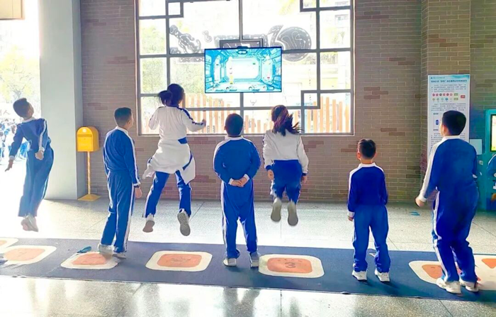 在坪洲小學(xué)的“AI+體育”測(cè)試區(qū),調(diào)研專家們親自感受了一視科技體育教學(xué)屏X1與AI體育角的創(chuàng)新應(yīng)用。