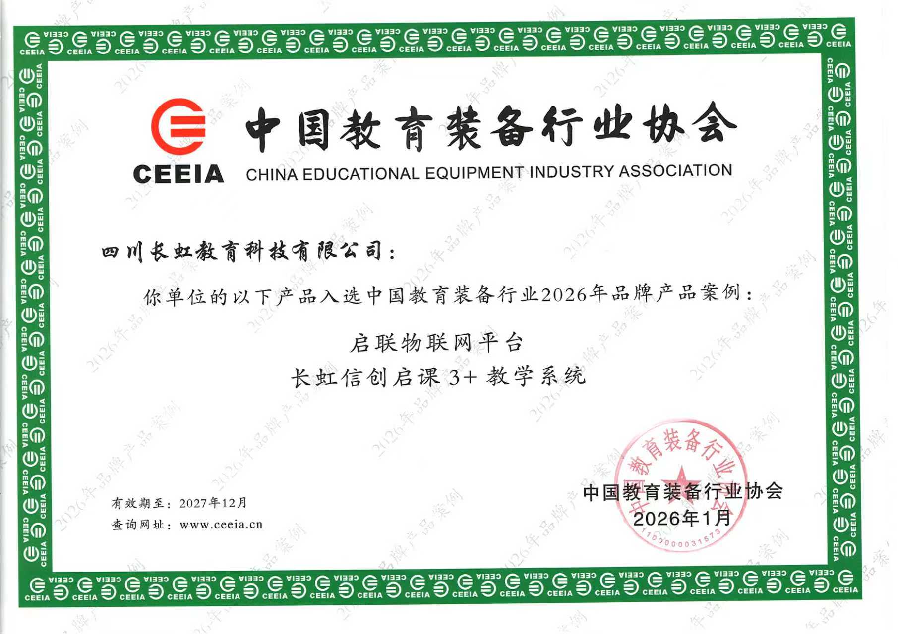 中國教育裝備行業協會2026年度品牌案例名單重磅揭曉,長虹教育兩大核心產品 ——“啟聯物聯網平臺” 和“長虹信創啟課3 +教學系統” 歷經多輪嚴苛篩選,從百余家企業、百余款產品中突圍入選,成為行業公認的標桿之作。這一殊榮,既是對長虹教育在教育科技創新領域硬核實力的高度印證,更是行業對其產品技術領先性、應用實效性與市場影響力的權威背書。