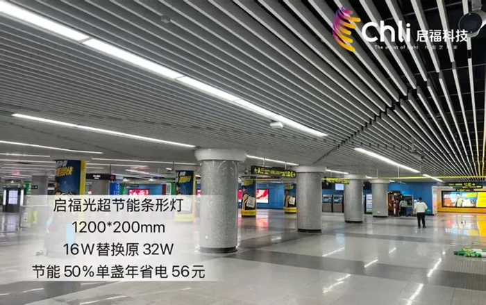 本次改造的核心技術支撐源于啟福光自主研發的“超節能照明燈具”。該款條形燈具采用超高光效LED光源結合特殊的光學設計、高效恒流電源等關鍵技術,從根源避免電力浪費。如配備智能化AI模組并借助智能管理平臺實現燈具狀態實時監測與故障預警,推動運維模式從“被動檢修”向“主動預防”轉型。連續中標大型地鐵項目,進一步印證了啟福光科技在復雜公共照明場景中的技術領先性與方案可行性。