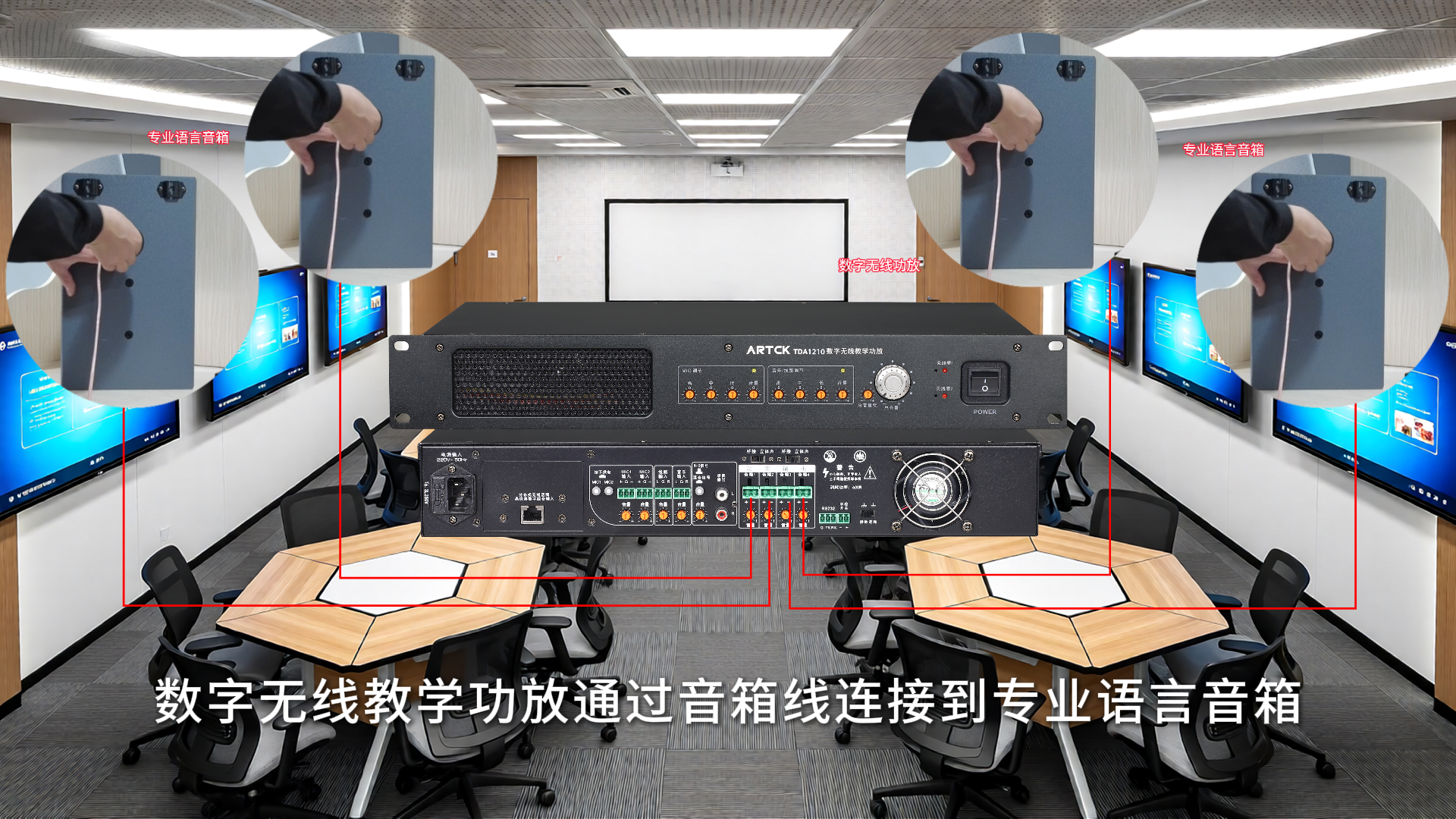 分布式無線話筒智能管家|分組研討型智慧教室場景二:機柜裝在講臺外