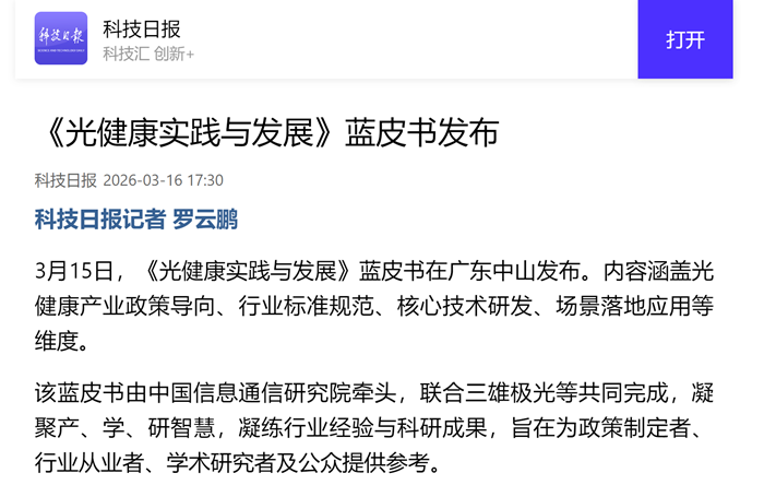 三雄極光總裁林巖的表態恰好印證了這一點。他表示,藍皮書的發布既是回望過往的探索之路,更是集結行業智慧、展望產業未來。他期望三雄極光與行業生態伙伴圍繞理念升級、標準構建、技術突破、產業協同等方面,共繪光健康產業的未來發展新藍圖。