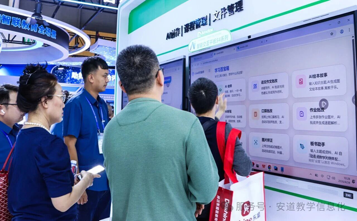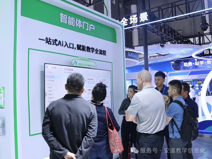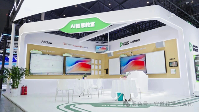 安道教育以“AI驅動智慧教學,開啟全場景新體驗”為核心主題亮相展會,設置七大特色展區(qū),全景呈現(xiàn)AI與教育教學深度融合的創(chuàng)新實踐。