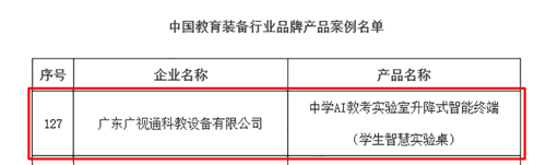 近日,中國教育裝備行業(yè)協(xié)會重磅公示了“中國教育裝備行業(yè)品牌企業(yè)案例名單”與“中國教育裝備行業(yè)品牌產(chǎn)品案例名單”。廣東廣視通科教設備有限公司憑借在理化生實驗室領域的深厚積淀與創(chuàng)新實力,成功入選品牌企業(yè)案例;旗下核心產(chǎn)品——中學AI教考實驗室升降式智能終端(學生智慧實驗桌)同步斬獲品牌產(chǎn)品案例殊榮,實現(xiàn)企業(yè)與產(chǎn)品雙維度權威認證。