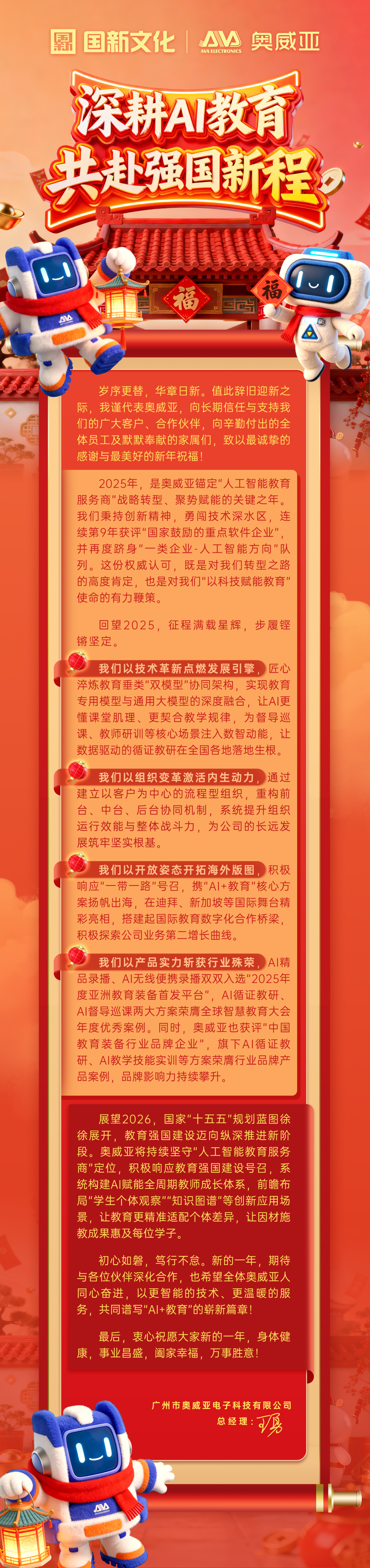 深耕AI教育,共赴強國新程——奧威亞2026年新年賀詞