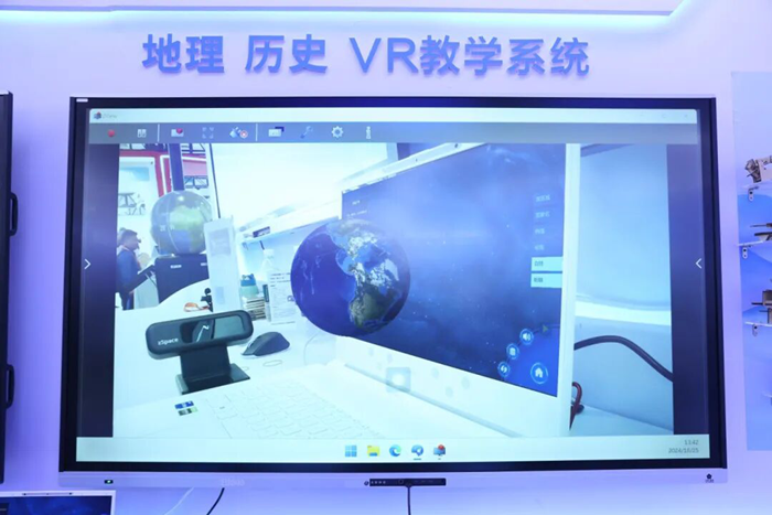寰宇地理VR教學系統:搭載裸眼XR便攜終端設備及裸眼顯示屏,構建虛擬地理場景,學生可操作、可互動、可動手實驗,在沉浸式體驗中掌握知識。