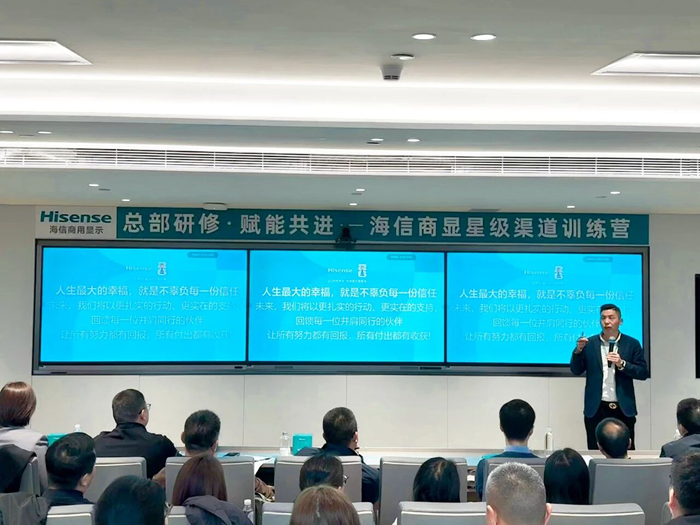 海信商顯國內業務中心總經理段總首先發表致辭,對遠道而來的渠道伙伴表示歡迎與感謝,回顧海信商顯發展歷程與核心優勢,強調渠道伙伴的核心作用,并明確訓練營核心目標——助力伙伴提升能力,實現與總部同頻共振。