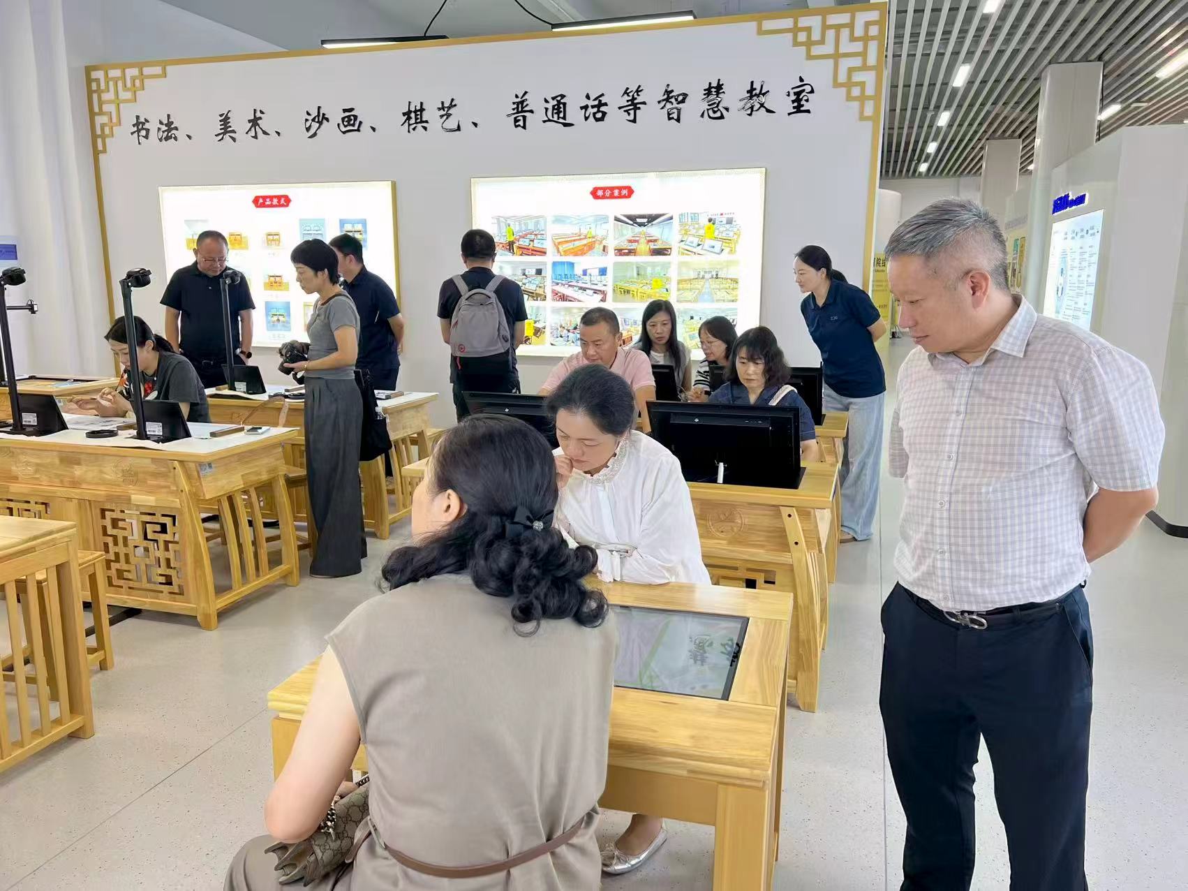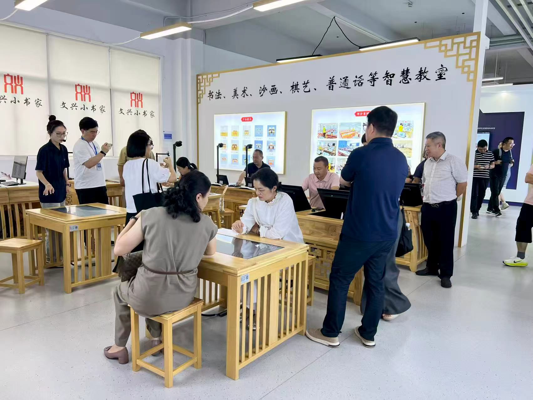 在文興小書家相關(guān)負(fù)責(zé)人的陪同下,蒼溪縣職業(yè)高級(jí)中學(xué)的領(lǐng)導(dǎo)和教師團(tuán)隊(duì)依次參觀了智慧書法教室、智慧美術(shù)教室、數(shù)字棋藝室以及沙畫創(chuàng)新教室等多個(gè)展示區(qū)域。每一款產(chǎn)品都蘊(yùn)含著前沿科技與傳統(tǒng)教育的深度融合,充分體現(xiàn)了文興小書家在教育裝備領(lǐng)域的專業(yè)性和創(chuàng)新性。