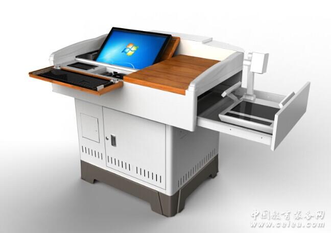 產品詳細介紹二、數位講桌 型號:FK530 1、材料:金屬灰桌面、冷軋鋼板桌體、防潮防銹的塑鋼底腳板和前U型塑鋼桌臉; 2、外觀:正前方有雙U型設計,方便印校徽,并與塑鋼底板腳的U型呼應;鋼塑扶手分層設計,即美觀結實,又加固強度;整體外觀流線型設計,無菱角,保護師生安全; 3、外置功能:桌面平整,老師上課只需一把鎖匙,可擴充IC卡電鎖; 4、內置功能:桌體內置可放置19寸-22寸液晶顯示器的翻轉板,仰角任意可調;翻轉鍵盤板,鍵盤板下的塑鋼盒內,有專門用于放中控面板、鼠標、筆記本電腦接線、便攜展示臺、水筆、水性筆擦等位置;側面可內置側抽拉大展示臺抽屜,承重≥20公斤; 5、尺寸:按中小學老師的人體力學設計的漸寬式扶手,講桌長寬高(CM),關閉:110* 75* 97;展開:195*105*97 6、安裝、防鼠:桌體采用拆裝設計,塑鋼底板設計了兩個防鼠網的過線孔。 7、防潮、防水、防銹:為防止桌面水杯的水或清潔桌面的水,以及潮濕天氣對講桌底腳板的腐蝕,所以桌面和底腳板均采用塑鋼材料。