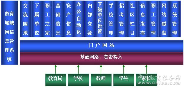 該系統(tǒng)的建立目標(biāo)是提供給各級教育主管部門使用,包括鎮(zhèn)教辦、區(qū)縣教育局、地市教育局、省教育廳和教育信息中心、電教站、教育管理中心等。該系統(tǒng)是集教育主管單位的門戶網(wǎng)站、辦公自動化系統(tǒng)和內(nèi)部信息管理與一體的現(xiàn)代化管理系統(tǒng),擁有包括內(nèi)部交流、財產(chǎn)管理、公文流轉(zhuǎn)、信息發(fā)布、網(wǎng)絡(luò)磁盤、職工管理、基礎(chǔ)教育數(shù)據(jù)匯總和統(tǒng)計、報表生成、招考管理等在內(nèi)的功能模塊,可幫助各級教育主管部門提高管理的數(shù)字化水平,增強職工的相互溝通與聯(lián)系等。同時,該系統(tǒng)可同步接收東方中原校園信息管理系統(tǒng)提交的基礎(chǔ)數(shù)據(jù),形成某個地區(qū)分布式的基礎(chǔ)教育管理解決方案。