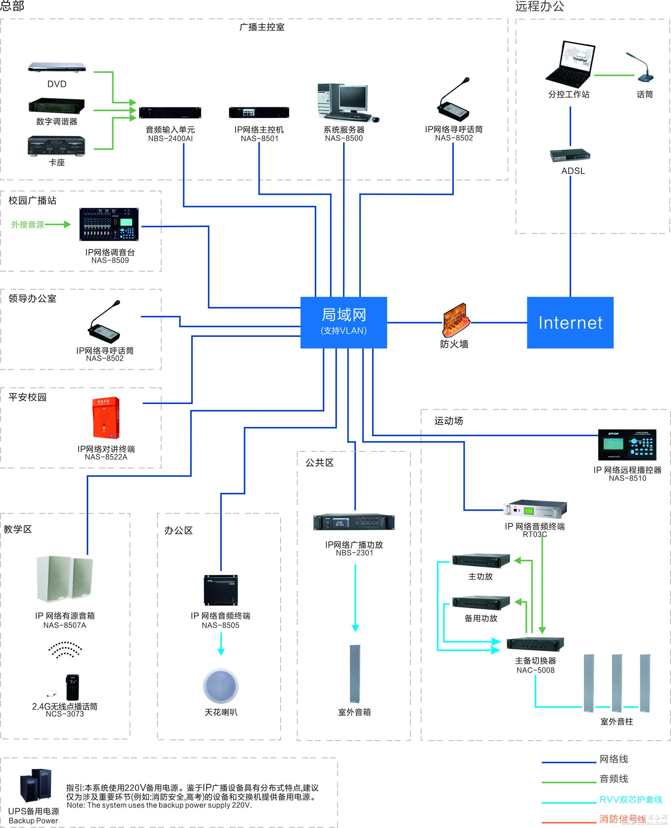 產(chǎn)品詳細(xì)介紹世邦I(lǐng)P網(wǎng)絡(luò)廣播系統(tǒng)采用當(dāng)今世界廣泛使用的TCP/IP網(wǎng)絡(luò)技術(shù), 將音頻信號(hào)以標(biāo)準(zhǔn)IP包形式在局域網(wǎng)和廣域網(wǎng)上進(jìn)行傳送,是一套純數(shù)字傳輸?shù)碾p向音頻擴(kuò)聲系統(tǒng)。徹底解決了傳統(tǒng)廣播系統(tǒng)存在的音質(zhì)不佳,維護(hù)管理復(fù)雜,缺乏互動(dòng)性等問題。該系統(tǒng)設(shè)備使用簡(jiǎn)單,安裝擴(kuò)展方便,只需將音頻終端接入計(jì)算機(jī)網(wǎng)絡(luò)即可構(gòu)成功能強(qiáng)大的數(shù)字化廣播系統(tǒng),每個(gè)接入點(diǎn)無需單獨(dú)布線,真正實(shí)現(xiàn)計(jì)算機(jī)網(wǎng)絡(luò)、數(shù)字視頻監(jiān)控、公共廣播的多網(wǎng)合一。 IP網(wǎng)絡(luò)廣播系統(tǒng)是完全不同于傳統(tǒng)廣播系統(tǒng)、調(diào)頻尋址廣播系統(tǒng)和數(shù)控廣播系統(tǒng)的產(chǎn)品。因建立在通用網(wǎng)絡(luò)平臺(tái)上,并融入世邦自有知識(shí)產(chǎn)權(quán)的數(shù)字音頻技術(shù),多方面體現(xiàn)了顯著的優(yōu)越性: 功能方面:可獨(dú)立控制每個(gè)終端播放不同的內(nèi)容(如:局域網(wǎng)內(nèi)200個(gè)終端同時(shí)播放200路節(jié)目)。不僅能夠完全實(shí)現(xiàn)傳統(tǒng)廣播系統(tǒng)的功能(如:定時(shí)打鈴、分區(qū)播放、消防報(bào)警等),而且還具備終端自由點(diǎn)播、終端間雙向?qū)χv等功能; 傳輸方面:音頻傳輸距離無限延伸,可運(yùn)行在跨網(wǎng)關(guān)的局域網(wǎng)和Internet網(wǎng)上,支持大范圍的重要型應(yīng)用,從主校區(qū)到分校區(qū)集中控制廣播,從公司總部到各個(gè)地區(qū)分部的同聲廣播,實(shí)現(xiàn)快速、可靠的信息溝通。每路節(jié)目占用帶寬僅0.1Mbps; 音質(zhì)方面:終端輸出音質(zhì)接近CD級(jí)(44.1K, 16bit), 滿足對(duì)聲音質(zhì)量要求較高的場(chǎng)合,如高考、大學(xué)四六級(jí)考試聽力播放,及教室里的日常外語聽力訓(xùn)練,每個(gè)發(fā)音都可以清晰可辨,不再為含混不清的聲音所困擾; 可靠性方面:服務(wù)器(Windows操作系統(tǒng))與IP網(wǎng)絡(luò)主控機(jī)(嵌入式操作系統(tǒng))提供雙重保險(xiǎn),如一方故障,另一方可接管所有終端,確保系統(tǒng)基本功能正常運(yùn)行。主控機(jī)與終端均采用工業(yè)級(jí)芯片,全天24小時(shí)工作,完全不受病毒侵?jǐn)_。借助于成熟的以太網(wǎng)絡(luò)硬件,整套系統(tǒng)無需額外的線路維護(hù)。 |