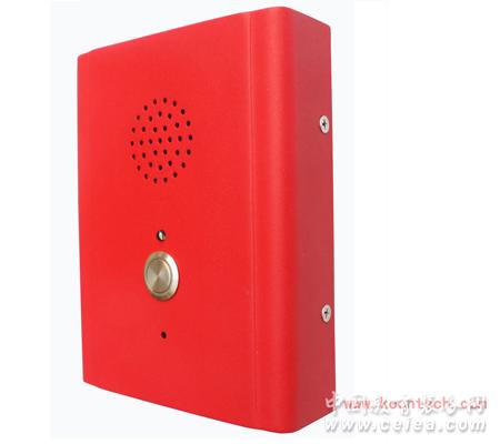 產(chǎn)品詳細(xì)介紹 本電話機(jī)可與大部分模擬或數(shù)字電話程控交換機(jī)兼容。適用用于各種工作環(huán)境下的語音通訊,并可在公共通訊網(wǎng)絡(luò)或?qū)>W(wǎng)上實(shí)現(xiàn)點(diǎn)對(duì)點(diǎn)(單鍵)通話。 1、產(chǎn)品特點(diǎn) ◆ 一鍵撥號(hào) ◆ 切換監(jiān)控畫面 ◆ 來電閃燈提示 ◆ 通話時(shí)間限制 ◆ 自動(dòng)掛機(jī) ◆ 高防水、防塵性能,全冷軋鋼板機(jī)殼,防護(hù)等級(jí)達(dá)到IP55。 ◆ 高耐用性,線材采用鐵氟龍線,抗油、抗強(qiáng)酸、抗強(qiáng)堿、抗強(qiáng)氧化劑符合軍工標(biāo)準(zhǔn)GJB-773及UL1332的要求。 2、應(yīng)用范圍 用于電梯、高速公路客戶中心、火車站、機(jī)場、碼頭、銀行、住宅小區(qū),體育館,商場等撥打求救電話 3. 技術(shù)參數(shù) 溫度:-35℃~75℃ 相對(duì)濕度:10%~95% 大氣壓力:86~106 Kpa 環(huán)境噪聲:≤60dB(A) 振鈴聲級(jí):70dB(A) 脈沖撥號(hào):撥號(hào)脈沖的斷續(xù)比為:1.6±0.2︰1.0 撥號(hào)脈沖速度:10±1次/秒 雙音多頻(DTMF)撥號(hào): 頻偏:≤1.5%; 低頻群電平:-9±3dB;高頻群電平:-7±3dB 頻率組合中的高低電平差:2±1dB; 諧波等總失真至少比基波電平低20dB 通話傳輸指標(biāo):SLR≤12,RLR≤-1,STMR≥10,輸出阻抗:600Ω