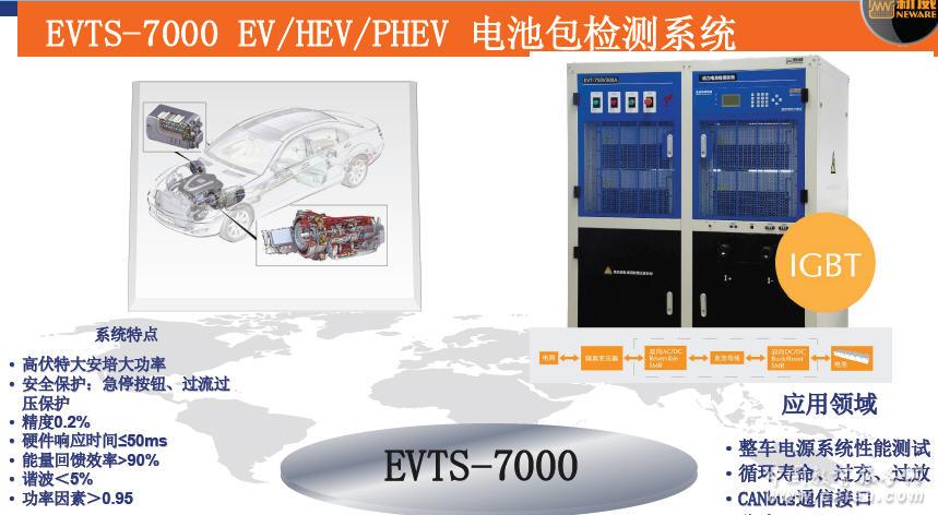 產(chǎn)品詳細(xì)介紹產(chǎn)品簡介: ① EVT-7000主要面向大電池包的檢測,作為新一代高電壓大電流動力電池檢測系統(tǒng),核心的功率器件采用IGBT(絕緣柵雙極型晶體管),區(qū)別于傳統(tǒng)功率器件與控制方法,測試控制更加穩(wěn)定可靠,是動力電池、儲能電池理想的系統(tǒng)化解決方案。 應(yīng)用領(lǐng)域 項目 應(yīng)用領(lǐng)域 ①性能測試: 電壓、電流、容量、能量/功率輸出能力 ②電池性能測試: 循環(huán)壽命、過充、過放 ③分選: 電池組內(nèi)單體一致性測試與評估 ④CAN bus通信接口: 支持與BMU/BMS通信 ⑤倍率測試: 倍率充電測試、倍率放電測試 ⑥放電能量: 純正弦回饋電網(wǎng) 技術(shù)指標(biāo) 項目 技術(shù)指標(biāo) ①輸出范圍(可定制): 電壓:100~800V 電流:±1000A 功率:800KVA ②分辨率: AD: 16bit; DA: 12bit ③控制精度: ±0.2% of FS ④測量精度: ±0.2% of FS ⑤硬件響應(yīng)時間: 電流(10%~90%)響應(yīng)時間≦1s ⑥數(shù)據(jù)記錄: 1Hz, 10Hz(可定制) , 支持△t/△U/△/I作為記錄條件 ⑦持模式: 充電:CCC,CVC, CC&CVC, 放電:CCD, CPD ⑧回饋效率: ﹥90% ⑨諧波: ﹤5% |