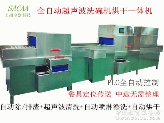 產品詳細介紹 我公司結合先進的超聲波清洗技術和國外噴淋式餐具清洗技術。打造出全能全自動化的適合中餐餐具特點的餐具清洗滅菌烘干一體機,整機只需2人操作,為各大中型院校工廠食堂節約大量人力水電資源。節能環保,用心服務。 全自動化超聲波洗碗機整機分自動除渣 + 超聲波清洗 + 自動清水沖洗+節能均熱烘干一步完成,采用獨創的復合式網帶傳送方式,適合大批量的不同材質的餐具。自動化程度高,全機只需2人操作(特殊下也只需增加1人從中協助即可)。大大節省了餐具清洗人員配置。有利于食堂工作人員合理分配。 全自動化超聲波洗碗機集合了以下各項核心技術 *超聲乳化油脂,清洗特別干凈,清洗方式無死角? *超聲滅菌,邊清洗邊消毒? *采用先進的超聲清洗技術,節能高效,比老式的噴淋洗碗機每年節電1萬度 。? *自動漂洗段用水后回收至自動除渣段再次使用? *不需專用清洗劑,安全衛生環保,使用成本低,比老式的噴淋洗碗機每年節約洗滌劑3000kg *不需人工預洗,只需2-3人左右操作即可,比老式的噴淋洗碗機節約人工3-6人