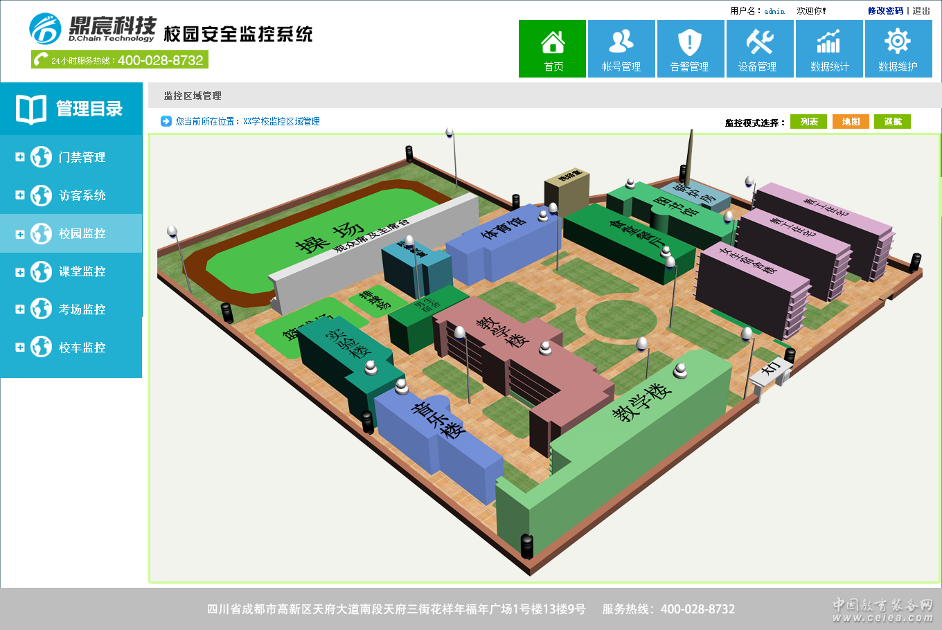 管理中心 基于云技術(shù)環(huán)境構(gòu)建的安全監(jiān)控數(shù)據(jù)管理中心,通過對校園內(nèi)新建與原有監(jiān)控基礎(chǔ)設(shè)備進行信息化改造,利用二維碼技術(shù)、RFID技術(shù)、嵌入式技術(shù)、無線傳感器技術(shù)、衛(wèi)星定位等手段,對校園內(nèi)需要感知的對象進行標識;利用標簽讀寫器、智能終端設(shè)備、手持接收終端、無線感應(yīng)器等信息識別設(shè)備,對上述標識信息進行識別,得到感知對象的數(shù)字信息;通過有線、無線網(wǎng)絡(luò)技術(shù)將這些信息及時、準確地傳送至數(shù)據(jù)管理中心,中心對收到的信息進行匯總、融合,對獲取的信息進行綜合分析、智能處理,從而使校園管理部門、各級安保單位等部門實時掌握各感知對象的詳細信息,為形成正確決策提供依據(jù)。物聯(lián)網(wǎng)技術(shù)使得校園對象感知能力極大加強,感知的速度、精度和范圍得到了極大提高,這是其他技術(shù)所不能代替的。 門禁系統(tǒng) 運用先進計算機遠程技術(shù)、網(wǎng)絡(luò)即時通訊以及數(shù)字化控制技術(shù)對校園門禁、宿舍、教師等重要區(qū)域的出入口進行電子化門禁管理,采用先進的非接觸式感應(yīng)讀卡技術(shù),實現(xiàn)對進出入數(shù)據(jù)的記錄、存儲與統(tǒng)計分析。系統(tǒng)采用RS865總線聯(lián)網(wǎng)或TCP/IP聯(lián)網(wǎng)技術(shù),具備高度可靠性與性能穩(wěn)定性、強大實時監(jiān)控及聯(lián)動功能,確保整個系統(tǒng)的安全可靠運行。 訪客系統(tǒng) 實現(xiàn)對進出學(xué)校陌生人員的信息化管理,系統(tǒng)實現(xiàn)對二代身份真?zhèn)涡缘谋O(jiān)測與辨別,實現(xiàn)對來訪人員的現(xiàn)場照相,并實時打印進出門條,提升學(xué)校安防能力。 校區(qū)監(jiān)控 運用高清低帶寬傳輸技術(shù),確保畫面?zhèn)鬏斮|(zhì)量與傳輸速度,可針對學(xué)校實際情況進行有線與無線等多種部署方式,確保監(jiān)控死角的有效控制。 課堂監(jiān)控 運用高清低帶寬傳輸技術(shù),確保畫面?zhèn)鬏斮|(zhì)量與傳輸速度,可針對學(xué)校實際情況進行有線與無線等多種部署方式,確保監(jiān)控死角的有效控制。 考場監(jiān)控 運用高清低帶寬傳輸技術(shù),確保畫面?zhèn)鬏斮|(zhì)量與傳輸速度,可針對學(xué)校實際情況進行有線與無線等多種部署方式,確保監(jiān)控死角的有效控制。具備人體檢測功能,可針對設(shè)置范圍對徇私舞弊行為進行高清抓拍與快速報警,確保考場紀律。 校車監(jiān)控 運用移動通訊技術(shù)、GPS技術(shù)與GIS技術(shù)實時對校車的運行時間、運行軌跡與運行狀況的綜合性監(jiān)管與記錄。 |