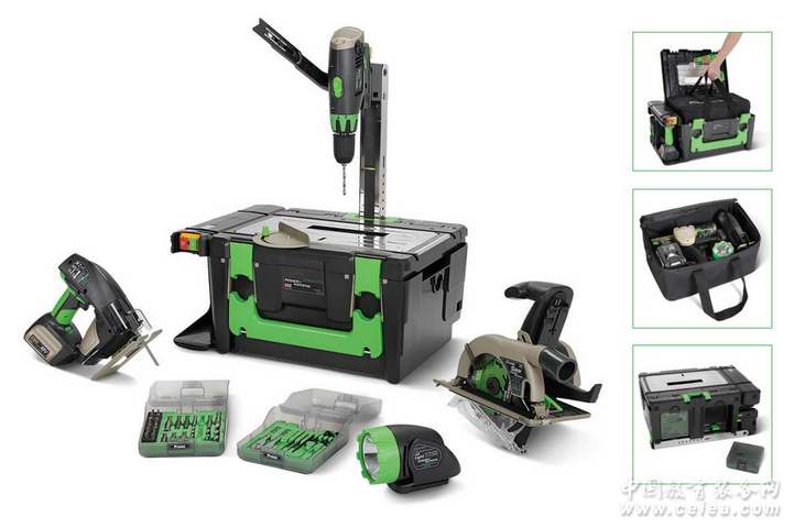 WS3E全球第一臺手提臺式電動組套工具,工作臺屢獲殊榮的設計,創新和獨特專利powerhandle系統,具有強大合耐用的組合功能,工具箱帶快充器直接通電及外置充電插座。powerhandle(電池手柄)采用鋰離子電池,集多樣啟動裝置為一體,工具可以包裝成世界上最小的組合4件套。結合工作臺的情況下,這個工具組套可成為一個完整的8個功能工作臺,用戶可以根據自己的需求,選擇多種18伏的無線電動工具,極適合快速維修、安裝等中小型工程。。
