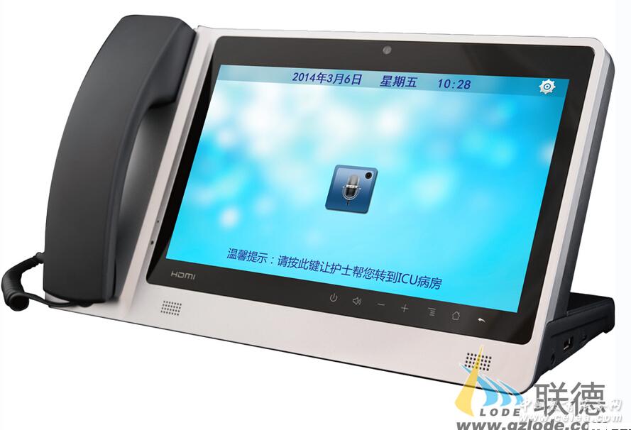 座式,放置在家屬探視區桌面,供重病房的病人家屬探視對講時使用。 采用10.2寸數字真彩屏,linux操作系統,觸摸式操作,界面高檔美觀。 須配合護士站主機和ICU分機使用。 ·基于局域網,以TCP/IP協議傳輸視頻、音頻和控制信號,系統內最大可 支持30路探訪可視對講。 高清可視對講,可手柄或免提通話,內置高靈敏度麥 克風、高保真立體聲喇叭,并具有16K以上的聲音采樣率,使聲音更加逼真、宏亮。 一鍵式呼叫。當病人家屬探視時,可使用該分機一鍵呼叫主機及雙向可視對講。 可外接耳麥。 采用低照度CMOS彩色攝像頭。 有錄音錄像功能。 可記錄呼叫日志、呼叫開始時間、 呼叫等待時間、通話開始時間、通話時間,并能對已錄下的錄音錄像文件進行查詢播放,也可將錄音錄像文件導出至電腦進行播放;當分機空閑時,可自動將錄音錄像文件上傳到指定的存儲服務器上·可配合一起使用,實現家屬探視區大屏同步查看病人通話視頻畫面。 安裝簡捷,用RJ45標準網線,插入網絡交換機任一端口即可工作。